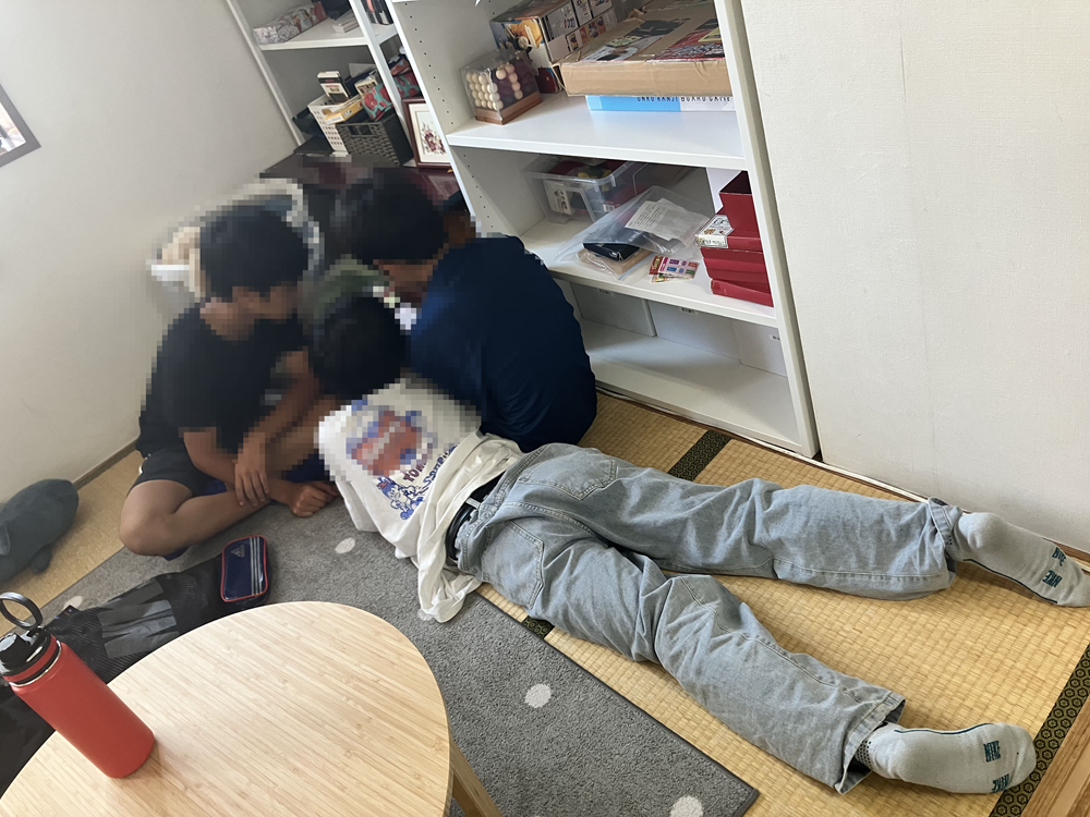 地下には音楽スタジオで、2階に上がると広いお部屋とマンガがあったり、ゲームをしたりできる小さいお部屋がありました!みんなそれぞれ好きなことをして過ごしていました!